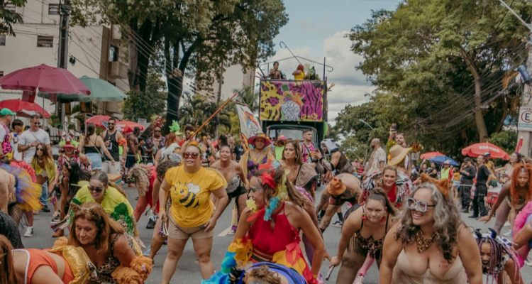 A chuva que caiu sobre Belo Horizonte neste domingo (8) não foi suficiente para esfriar a temperatura na Avenida Assis Chateaubriand. Em seu segundo desfile oficial, o Bloco Salada de Frutas confirmou sua vocação para grandes espetáculos, arrastando milhares de foliões pelo bairro Floresta. Com o tema “Frutas Selvagens: há uma alegria selvagem em estar vivo”, o cortejo foi marcado por um clima de comunhão, resistência e performances artísticas.