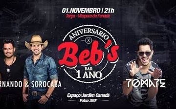 Evento open bar será realizado no dia 1º de novembro com shows de Fernando & Sorocaba e Tomate em palco 360º no Espaço Jardim Canadá O sucesso do Beb’s Bar em Belo Horizonte é refletido diretamente na festa... Leia mais...